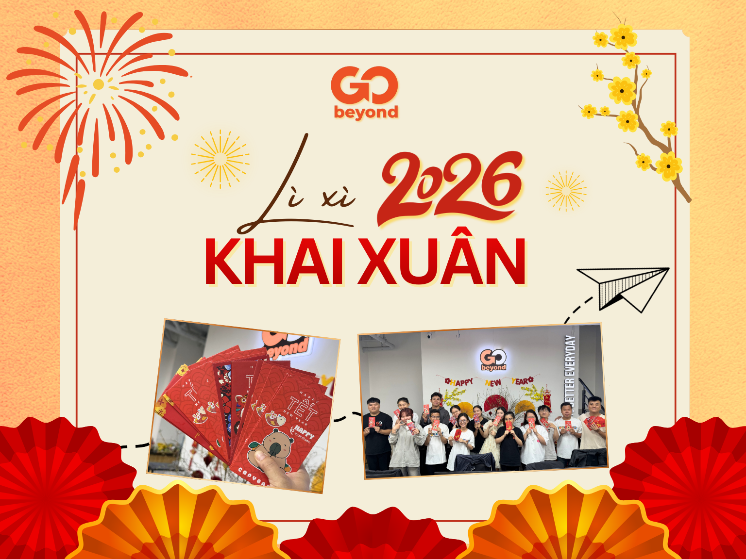 2026 của Go Beyond mở màn bằng một buổi khai xuân đầy sắc đỏ và tiếng cười rạng rỡ. Hoạt động lì xì đầu năm không chỉ mang lại không khí rộn ràng, mà còn khởi động tinh thần tích cực cho cả tập thể ngay từ ngày đầu tiên làm việc. Những phong bao…